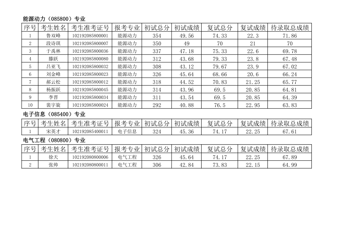 注:总成绩=初试总分/初试满分×100×70%+复试总分×30% ,成绩保留小数点后两位。