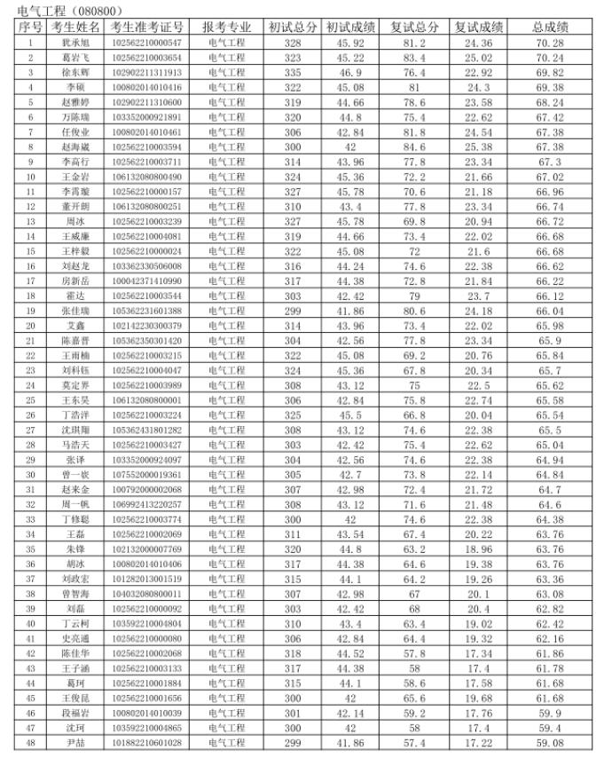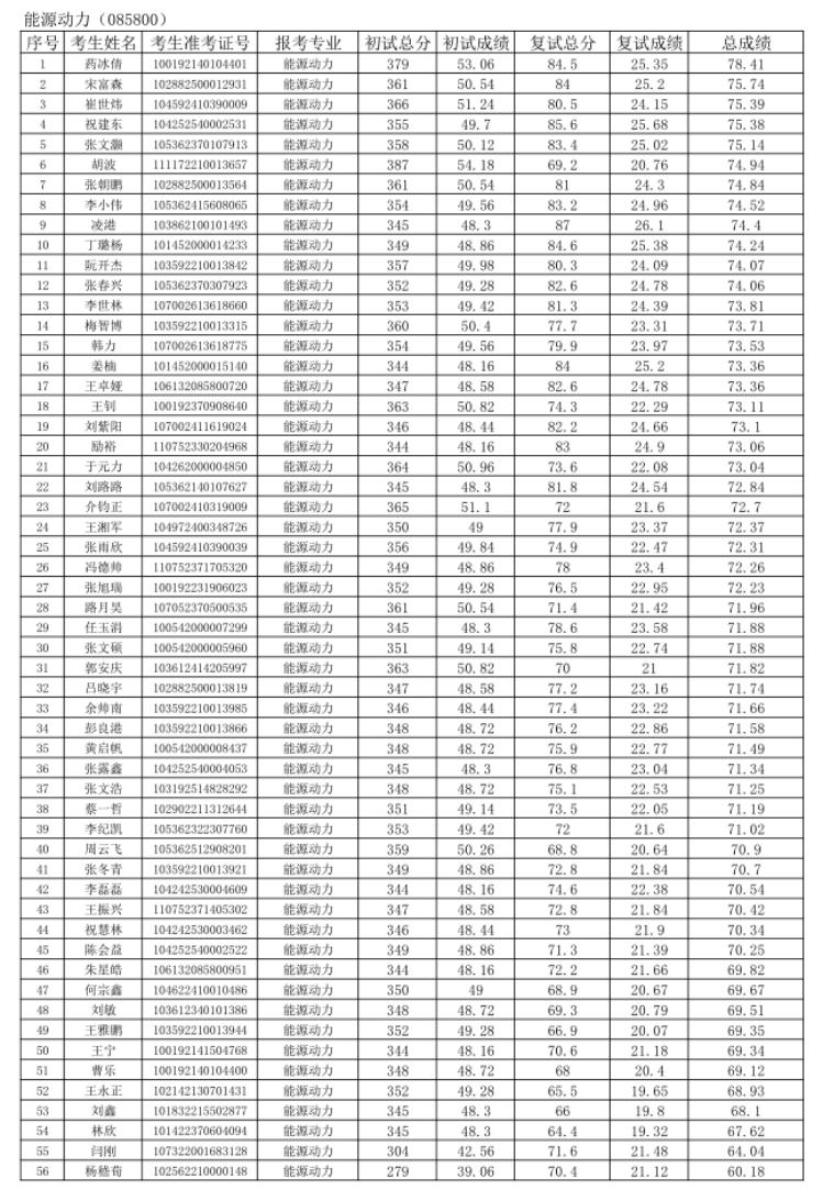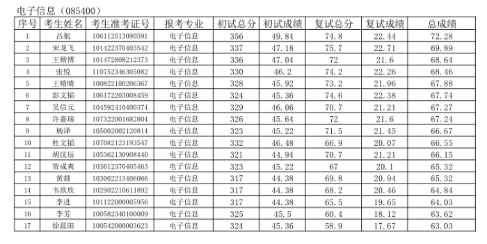 注:总成绩=初试总分/初试满分×100×70%+复试总分×30% ,成绩保留小数点后两位。