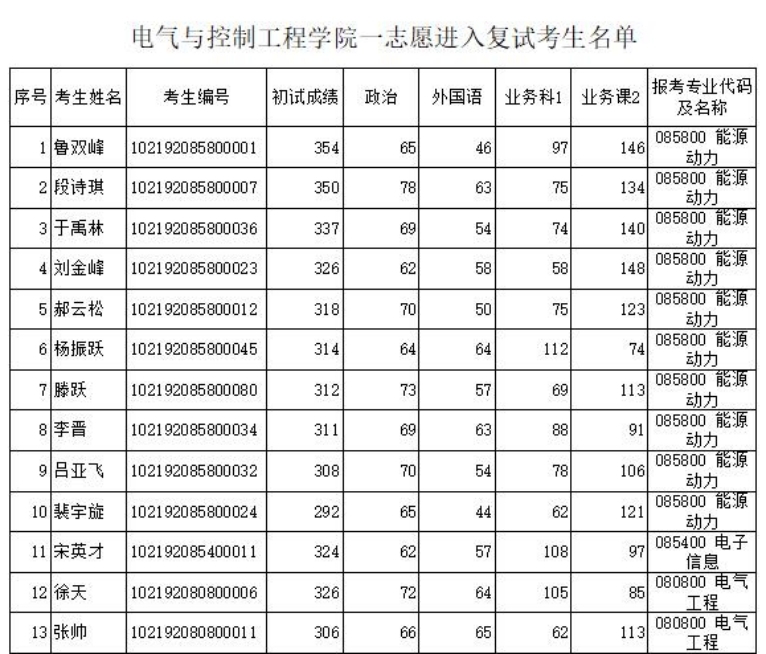 附录:一志愿进入复试考生名单