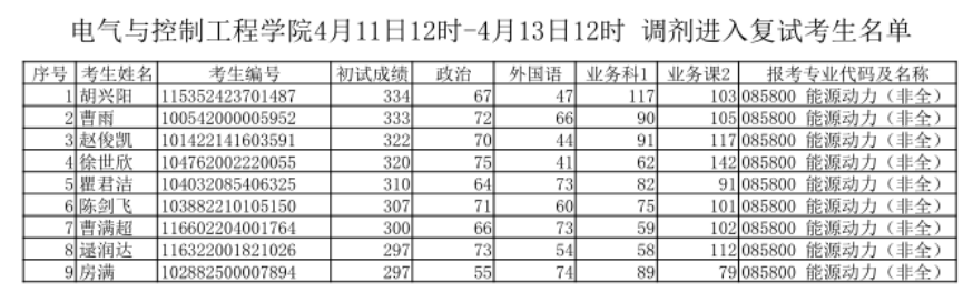 附录4月11日12时-4月13日12时 调剂进入复试考生名单